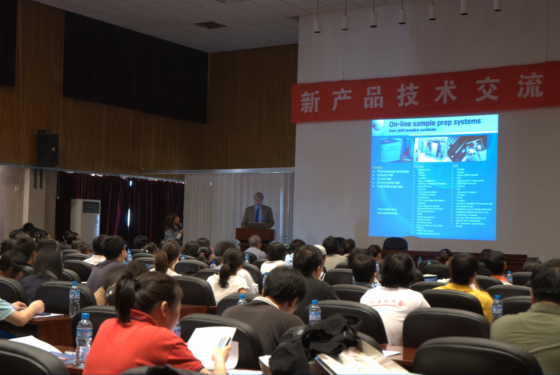 此次會議是綠綿科技公司繼4月28日、29日分別在青島、濟南成功主辦2009山東地區(qū)新產品應用技術交流會的基礎上,特邀荷蘭Spark公司的資深樣品制備和前處理專家Gerard Haak先生到會做精彩演講,并由北京市疾病預防控制中心段鶴君博士友情翻譯。Gerard Haak先生與大家交流的專題是“全自動在線SPE系統”。全自動在線SPE(固相萃?。┫到y是荷蘭Spark公司的產品,技術領先。該系統的獨特優(yōu)勢是:既能快速、高通量進行樣品前處理,又能與質譜系統同步在線聯機,處理一個樣品只需兩分鐘,兩天即可開發(fā)一個完整方法,交叉污染低,重現性與穩(wěn)定性。全自動在線SPE系統技術成熟,目前已經有1000多套在各國運行,主要用戶有USA FDA、USA EPA、USA CDC、USA FBI、UK EPA、NLS EPA、Pfizer、GSK、BMS、Amgen、 Astra Zeneca、Johnson、Eli Lilly、Nestle、Dupont、Merck、Roche等。與會專家普遍認為,該系統可以為生物醫(yī)藥、食品安全、環(huán)境保護等領域的分析檢測工作提供高通量快速解決方案,國內應用前景廣闊。