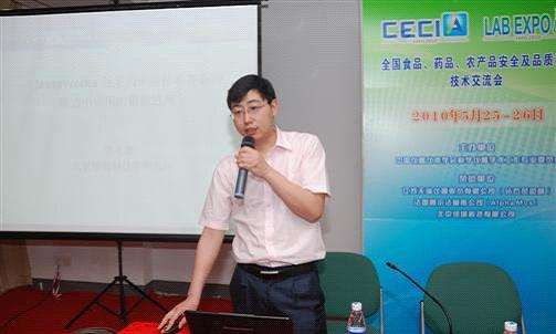 綠綿科技展臺(tái) 綠綿科技展出的產(chǎn)品 各位專家與綠綿科技?xì)W陽偉民經(jīng)理的合影 在同期舉行的食品、藥品、農(nóng)產(chǎn)品安全及質(zhì)量控制檢測(cè)技術(shù)研討會(huì)上,北京綠綿科技的李衛(wèi)建工程師做了題為“MassWorks 分子式識(shí)別技術(shù)在各種質(zhì)譜中應(yīng)用的新進(jìn)展”的報(bào)告。 綠綿科技 李衛(wèi)健工程師 MassWorks是一款質(zhì)譜軟件產(chǎn)品,榮獲了PittCon2006新產(chǎn)品銅獎(jiǎng)。其獨(dú)特之處在于單級(jí)質(zhì)譜上5ppm精度質(zhì)量測(cè)定和用同位素峰簇作分子式的識(shí)別功能。據(jù)李工介紹,MassWorks可以讓用戶實(shí)現(xiàn)低分辨質(zhì)譜上實(shí)現(xiàn)高分辨質(zhì)譜的功能、低分辨質(zhì)譜上實(shí)現(xiàn)分子式的準(zhǔn)確識(shí)別、高分辨質(zhì)譜上實(shí)現(xiàn)分子式的準(zhǔn)確識(shí)別。此外,MassWorks可應(yīng)用于不同品牌不同類型的質(zhì)譜,從單四極桿氣液質(zhì)、三重四極桿氣液質(zhì)到Q-TOF、Orbitrap / FT。 Massworks在國內(nèi)已有中國疾病預(yù)防控制中心、公安部物證鑒定中心、中國農(nóng)科院環(huán)發(fā)所煙草研究院等十余家用戶。中科院上海藥物所是早的國內(nèi)用戶。 李工通過實(shí)例Massworks 測(cè)定天然產(chǎn)物(玫瑰油)中未知成分、MassWorks結(jié)合LC/MS快速篩查藥品及保健品中非法添加化學(xué)品介紹了Massworks的功能和創(chuàng)新之處。吸引了在座嘉賓的關(guān)注。 Massworks可應(yīng)用于以下領(lǐng)域:有機(jī)合成產(chǎn)物或付產(chǎn)物的鑒定、降解產(chǎn)物的鑒定、農(nóng)殘的鑒定、雜質(zhì)的鑒定、代謝產(chǎn)物的鑒定、環(huán)境污染物的鑒定、爆炸物的當(dāng)場(chǎng)鑒定、天然產(chǎn)品中有效化合物的鑒定、濫用藥物。
