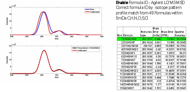 ·NEW! 應(yīng)用在TOF、OrbiTrap或FTMS高分辯質(zhì)譜上,大大提高其在待選列表中分子式的識(shí)別能力,而且不需要標(biāo)準(zhǔn)物校正