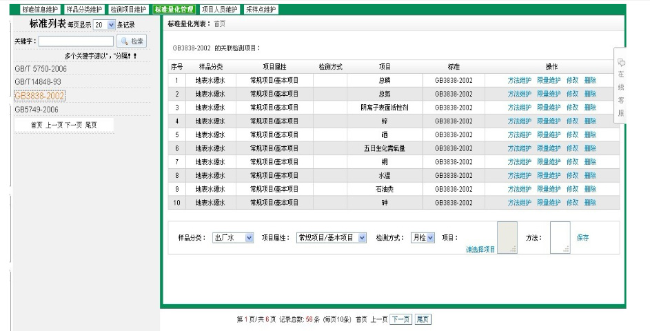 (2)用戶范圍廣:包括水質(zhì)檢測(cè)中心全體人員、相關(guān),系統(tǒng)用戶40人左右。