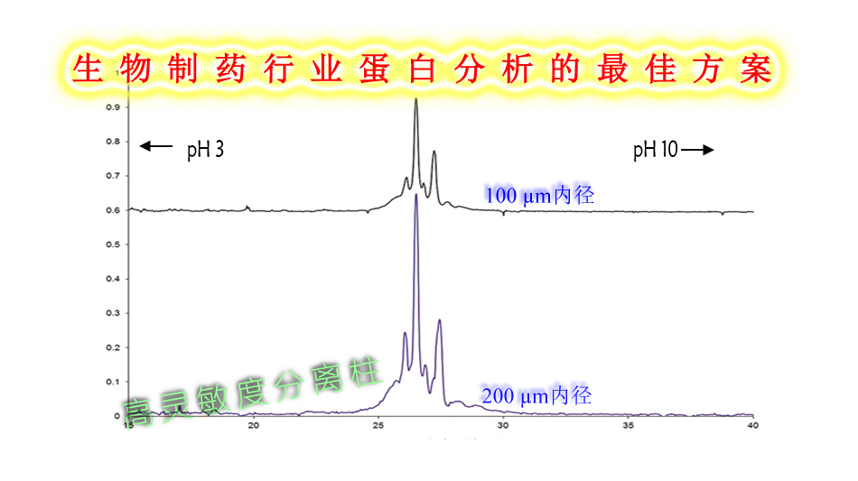 ·全柱成像檢測(cè)應(yīng)用于毛細(xì)管等電聚焦,可以取消樣品聚焦后譜帶移動(dòng)步驟,充分保持毛細(xì)管等電聚焦的高分離柱效和高分辨率
