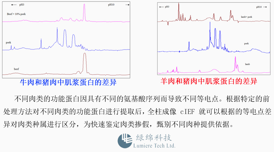 李斌介紹了全柱成像cIEF 創(chuàng)新的采用全柱實(shí)時(shí)檢測的方式,使得蛋白 pI 的測定變得簡單。在生物醫(yī)藥領(lǐng)域,高分析速度和的重復(fù)性使其它成為蛋白質(zhì)藥物和抗體藥物研發(fā)和質(zhì)量控制的強(qiáng)有力工具。作為一種快速的分析方法,在奶制品、肉類等食品功能蛋白檢測、食品品質(zhì)的提高、營養(yǎng)的增加研究、食品蛋白真?zhèn)舞b別等應(yīng)用上具有巨大潛力。