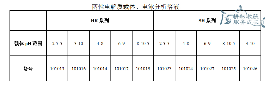 綠綿科技提供完善的兩性電解質(zhì)載體,10種獨有的載體,不同pH范圍的載體滿足不同pI范圍的蛋白質(zhì)分析要求。
