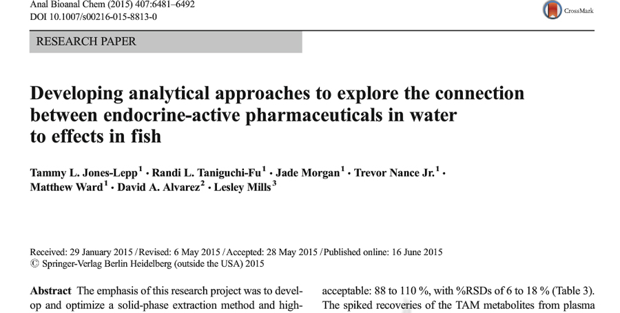 《探討水中內分泌活性藥物對魚類影響的分析方法》一文作者使用了Biotage TurboVAP II進行濃縮到,23度10 psi氮氣到0.5mL,溶劑轉換為乙腈2mL,4度保存,LCMSMS進行測定內分泌活性藥物(EPAs)和代謝物。