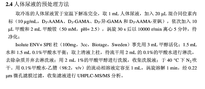 使用Isolute_ENV+SPE柱富集和凈化樣品研究膳食丙烯酰胺巰基尿酸加合物