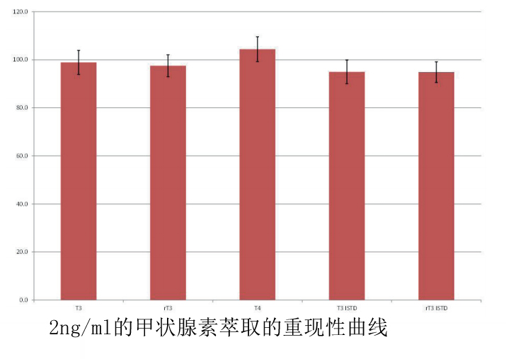 Biotage的新應(yīng)用文章,使用EVOLUTE® EXPRESS AX 30mg固定板萃取血清中T3, rT3和T4,然后LC-MS/MS 分析,本方法具有重現(xiàn)性高,卵磷脂含量低的特點(diǎn),低定量線小于50pg/mL。