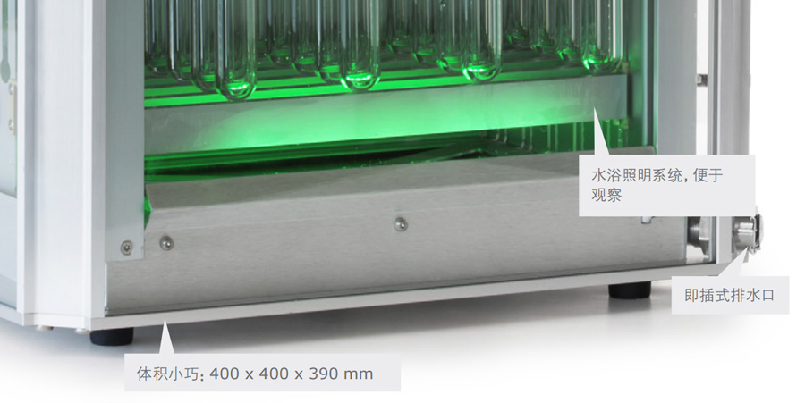 透明水浴槽創(chuàng)造性地實(shí)現(xiàn)了樣品濃縮過程的可視性,不必中斷濃縮進(jìn)程即可隨時觀察樣品濃縮進(jìn)度。