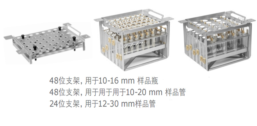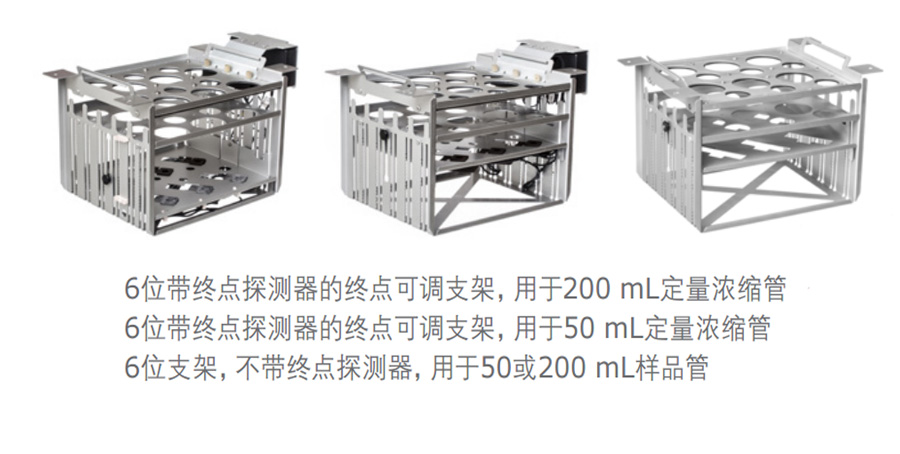 新款TurboVap®另一個創(chuàng)新性,采用了兼容性更強(qiáng)的多功能可調(diào)支架,每一個支架都可以容納多種規(guī)格的樣品管。配合這些多功能支架,TurboVap® LV可以使用1.5 mL到60 mL的樣品管。兩種48位的多功能支架涵蓋了大多數(shù)常用樣品管的規(guī)格,當(dāng)采用24位模式時,24位多功能支架可以容納24個外徑12-30 mm的樣品管,包括I-Chem/ASE/EPA樣品瓶和50 mL離心管。同一臺TurboVap® II則可以使用兩種自動終點(diǎn)感知的終點(diǎn)可調(diào)支架,分別容納50和200 mL的定量濃縮管。