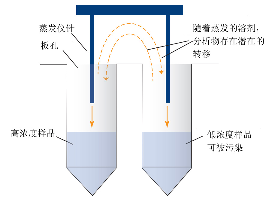 在蒸發(fā)過程中的“熱點(diǎn)”串?dāng)_,導(dǎo)致高濃度樣品從板孔轉(zhuǎn)移到低濃度板孔的機(jī)制,這表現(xiàn)為假陽性,而非真正數(shù)據(jù)。