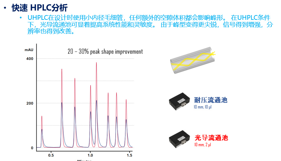 2、高靈敏度的檢測器和流通池方案