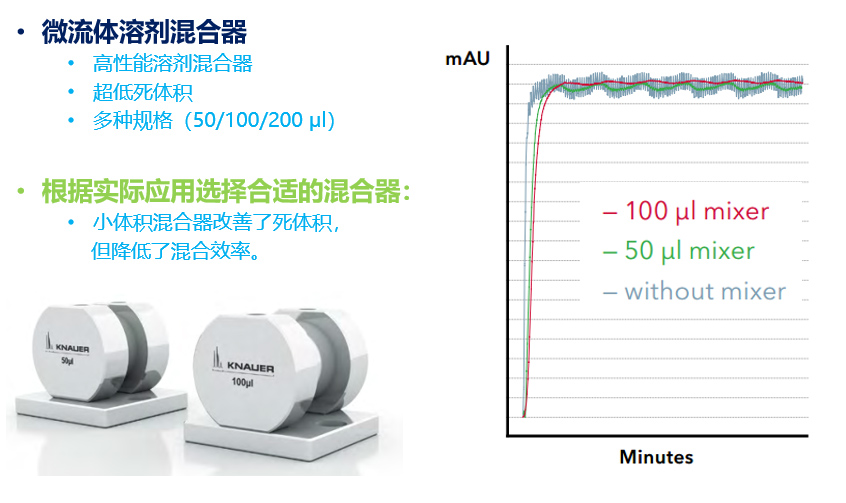 AZURA 微流體混合器具有高混合效率和低死體積的特點。您可根據(jù)實際的應(yīng)用或流速來選擇及更換不同體積(50/100/200μl)的混合器以達(dá)到佳地效果。