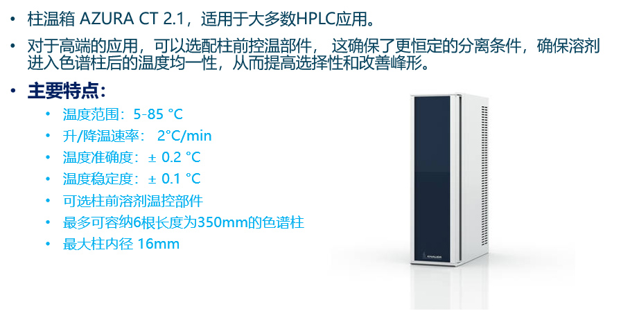 AZURA CT2.1L 柱溫箱可防止柱溫過熱并保持穩(wěn)定的溫度,使您得到高度重復(fù)的結(jié)果。