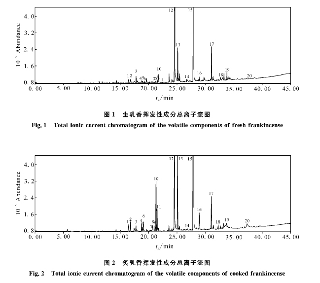 熱脫附-氣相色譜/質(zhì)譜聯(lián)用分析生、炙乳香揮發(fā)成分