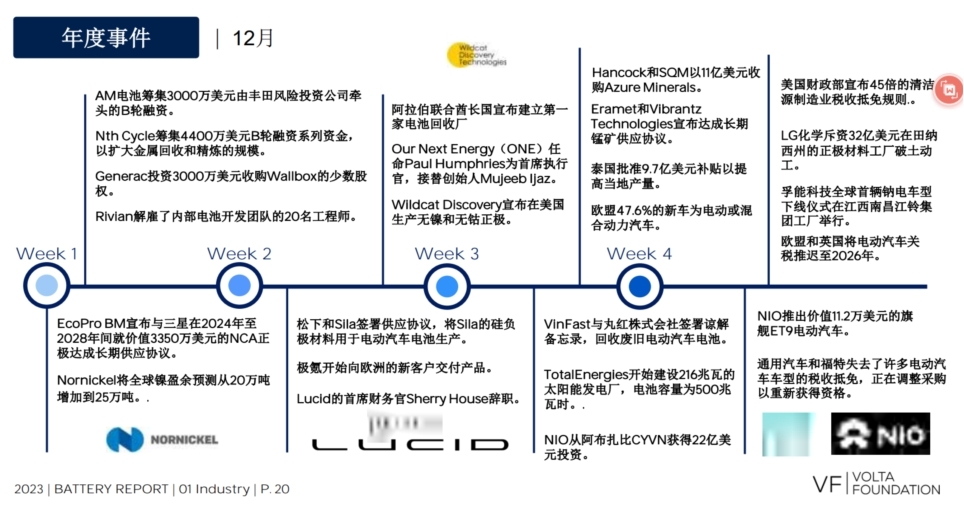 2023年是全球電池行業(yè)持續(xù)增長和調(diào)整的一年——電動乘用車銷量首次突破1000萬輛,盡管利率較高,但同比增長32%。過去一年,新電動汽車的平均價格下降了25%,部分原因是制造商爭奪市場份額而引發(fā)的電動汽車“價格戰(zhàn)”,使得新電動汽車的平均價格僅比新車整體市場高出4%。鋰的成本自2022年底達到峰值以來已經(jīng)下降了80%,這引起了礦業(yè)公司的恐慌,但也導致電池電芯價格降低了16%至107美元/KWh。