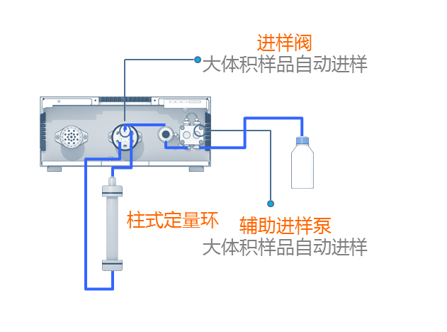 基于Calmflow plus多功能ASM2.1L元件設計,樣品進樣模塊含有進樣泵和兩個六通三口閥,通過樣品環(huán)和進樣針進小體積樣品,或通過集成的進樣泵進大體積樣品。