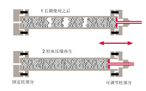 通過可調整柱端的螺絲進行軸向調整,可以再調整柱床長度的30%(25-40mm),保證制備柱性能不變,延長使用壽命。