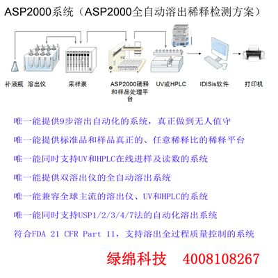 ASP2000全自動(dòng)溶出系統(tǒng)是英國(guó)實(shí)驗(yàn)室自動(dòng)化公司(AutomatedLabSystems),全球領(lǐng)先的新一代藥片溶出解決方案,可以將整個(gè)溶出過程完全自動(dòng)化,溶出-取樣-收集樣品-補(bǔ)液-稀釋-試劑添加-標(biāo)準(zhǔn)品制備-進(jìn)樣-檢測(cè)-數(shù)據(jù)報(bào)告-審計(jì)追蹤溯源。